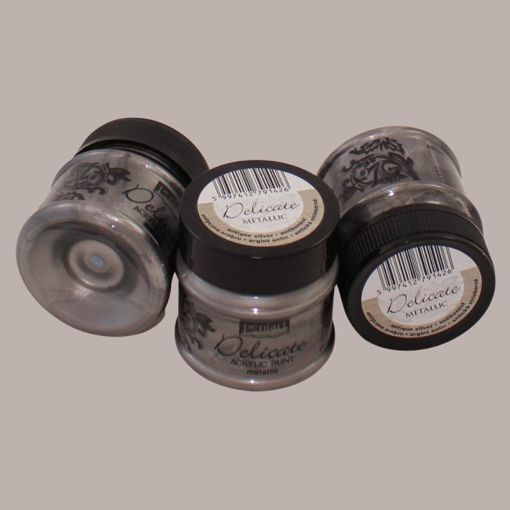 Pentart Delicate je akrylová farba na vodnej báze s vysokým obsahom pigmentov a jemných metalických častíc. Vytvára hodvábny, elegantný efekt, ktorý dodá každému dielu luxusný vzhľad. Farba je rýchloschnúca, bez zápachu a vhodná na rôzne povrchy – od dreva po keramiku. Skvele sa kombinuje aj s Paverpolom, čo otvára ďalšie možnosti kreatívnej tvorby.