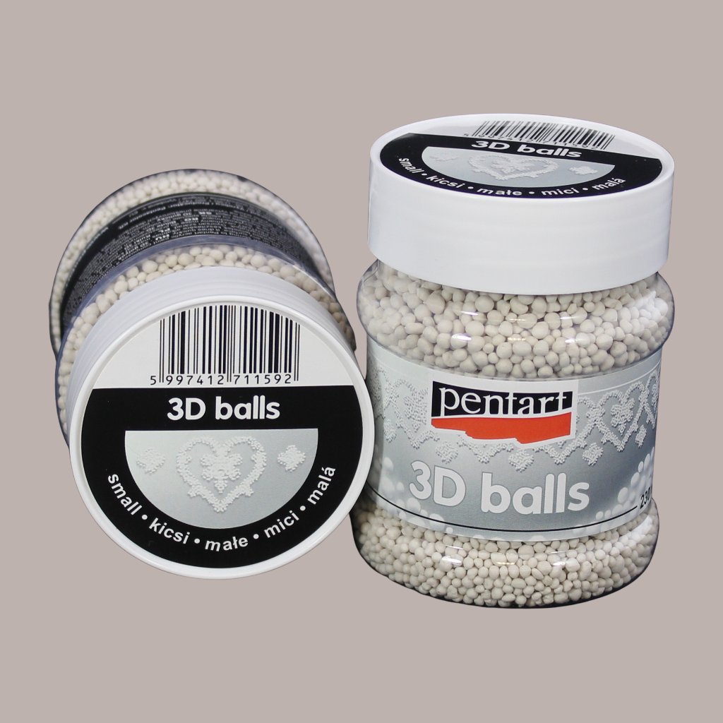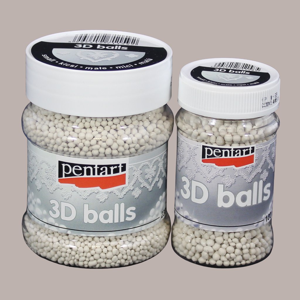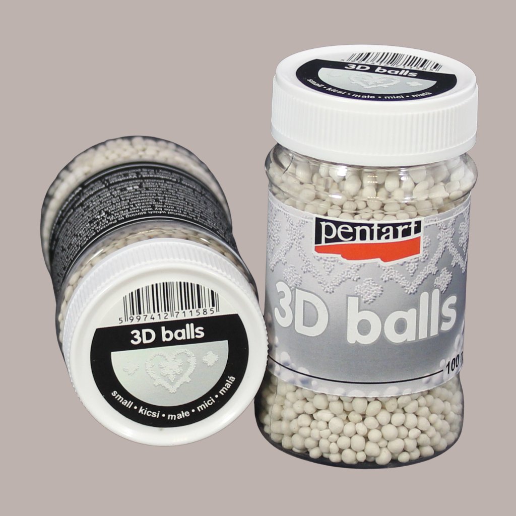 Malé 3D guličky od značky PENTART sú mimoriadne ľahké dekoračné prvky určené na vytváranie jemných 3D povrchov. V kombinácii s akrylovou farbou, lepidlom, Paverpolom alebo gélovou pastou umožňujú vytvoriť detailné textúry a štruktúry na rôznych povrchoch.