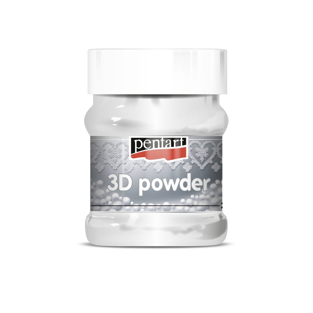 Jemný 3D prášok značky Pentart je veľmi drobný, ľahký minerálny prášok určený na vytváranie jemných reliéfov a plastických efektov na rôznych povrchoch. Po zmiešaní s pastami, akrylovou farbou alebo lepidlom vytvára hladký, decentný 3D efekt bez zbytočnej hrúbky.