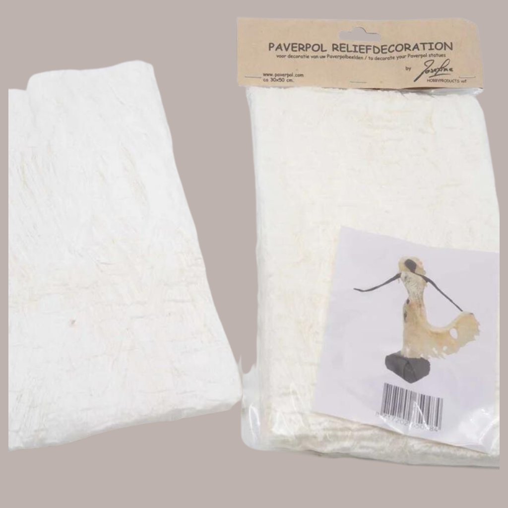 Relief Decoration je textilný materiál vyrobený zo 100% prírodných vlákien. Je navrhnutý tak, aby sa dal ľahko tvarovať a kombinovať s tekutým tužidlom Paverpol. Po aplikácii a zaschnutí vytvára pevné, plastické povrchy s výraznou štruktúrou. Je ideálny na dekorovanie obrazov, sošiek, misiek či iných umeleckých objektov.