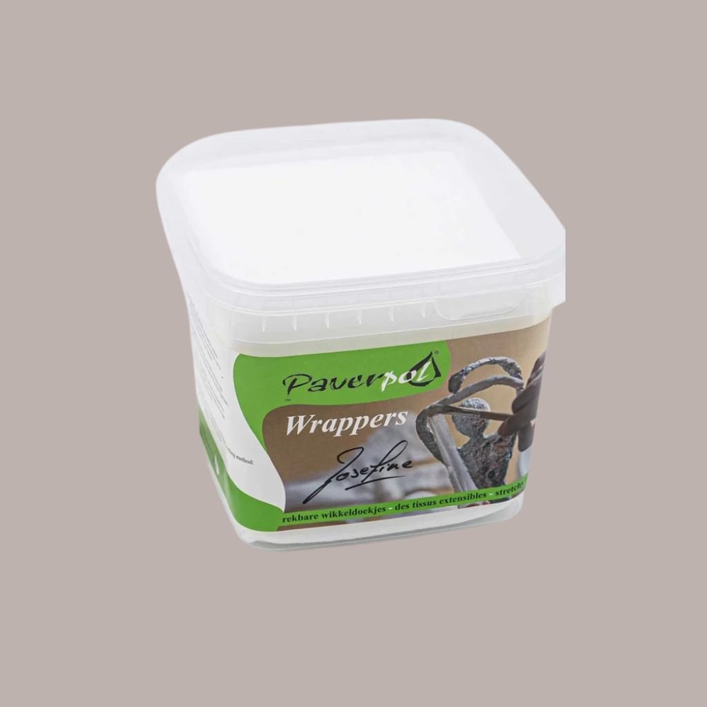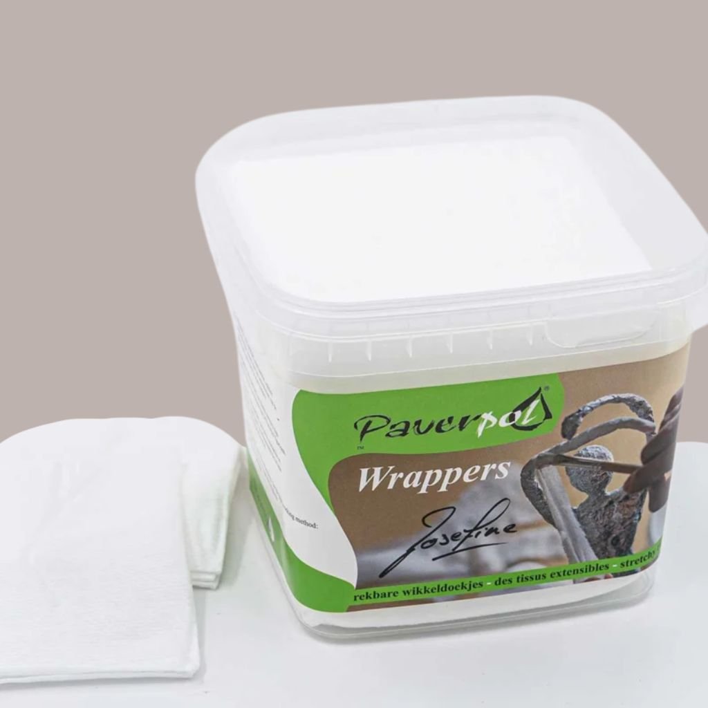 Wrappers sú textilné pásy vyrobené zo 100% prírodných vlákien. Sú navrhnuté tak, aby sa dali ľahko tvarovať, krčiť, trhať a vrstviť. Po namočení do Paverpolu sa stanú poddajnými a po zaschnutí vytvárajú pevné, plastické štruktúry. Sú ideálne na tvorbu oblečenia, záhybov, objemných tvarov a dynamických prvkov na soškách či dekoráciách.